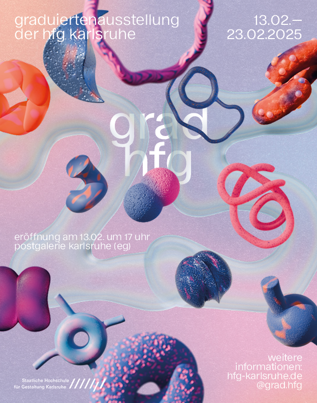 In February 2025, Bob was part of the art direction team for the graduation show at the University of Design Karlsruhe. As a university proud of its multidisciplinary structure, we embraced both digital and analog techniques to represent our studies. With a playful yet straightforward approach, we combined the individuality of each artist and project into one cohesive grid of forms.