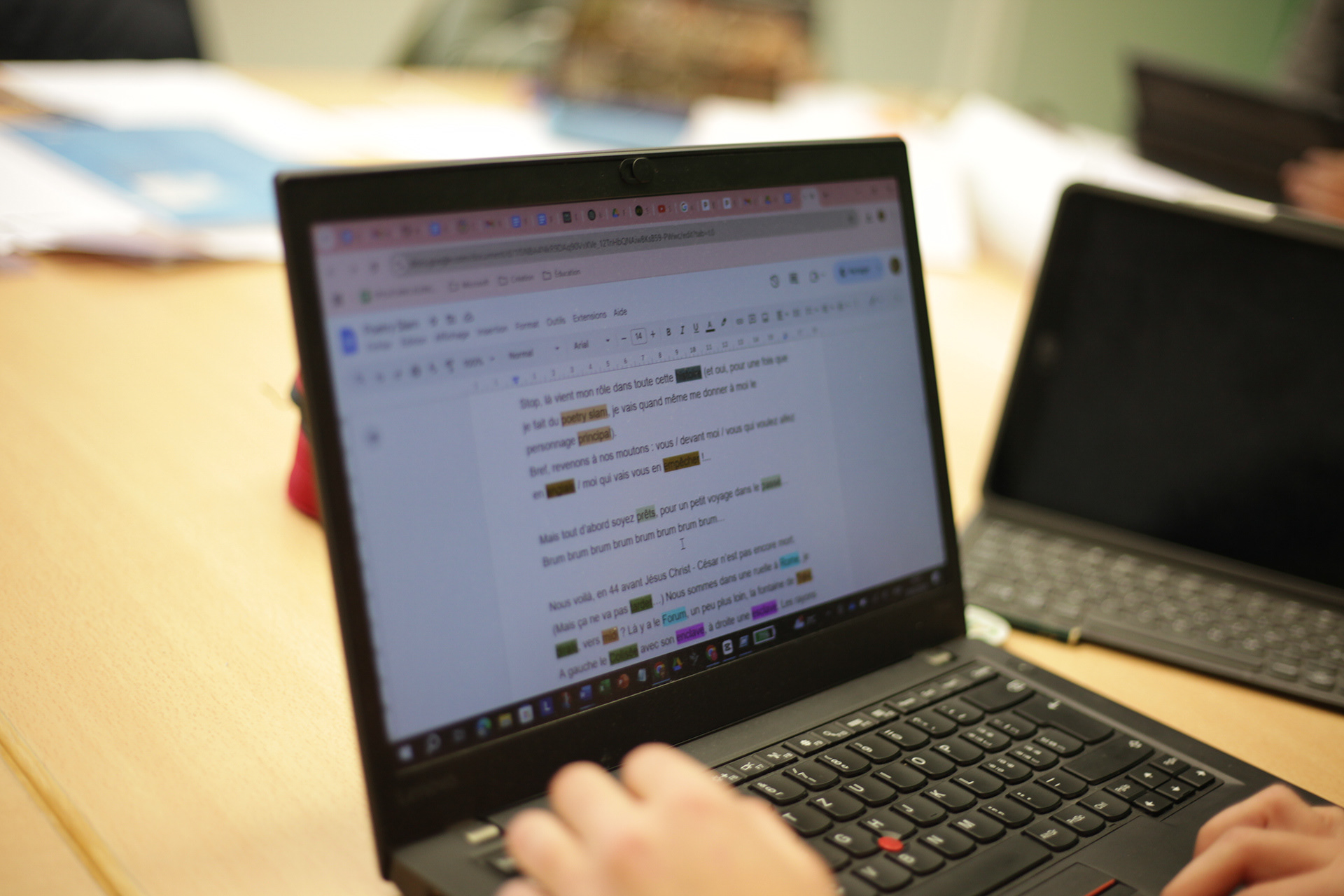 Whether working with young adults, professionals or cultural institutions, we start by creating space, through theater-inspired games, voice and body language exercises, and playful entry points into language and expression.
